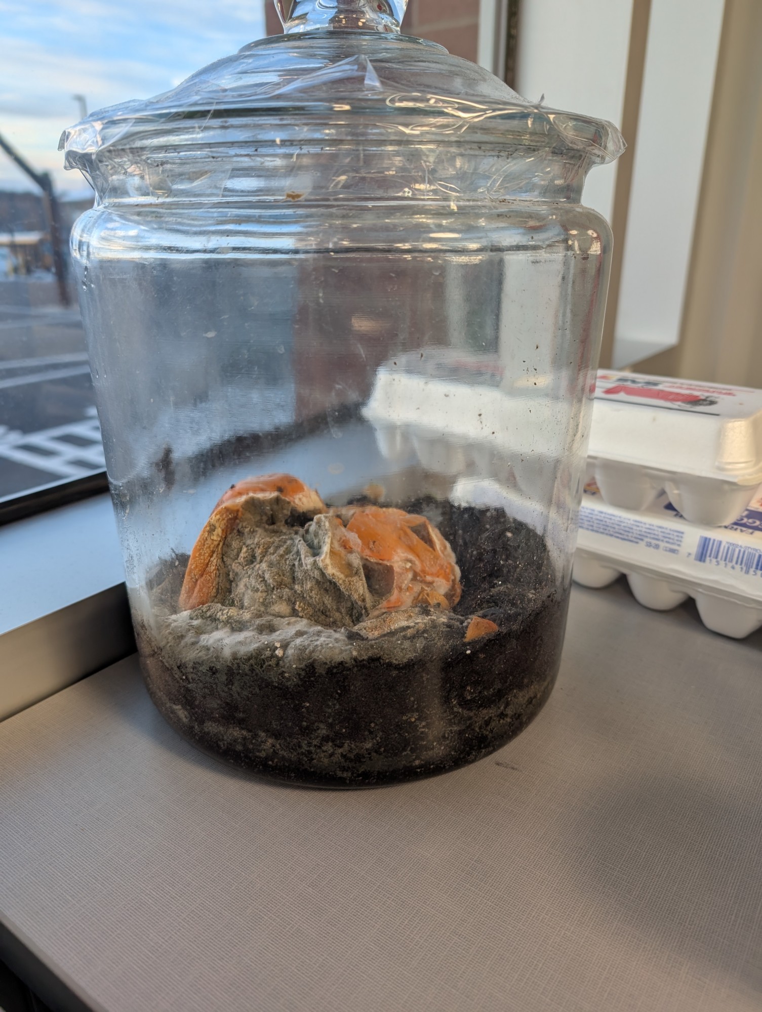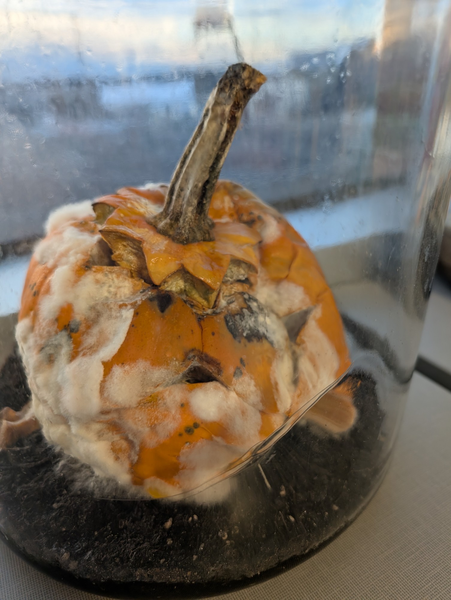 Some classes will be watching a pumpkin decompose in a glass jar.